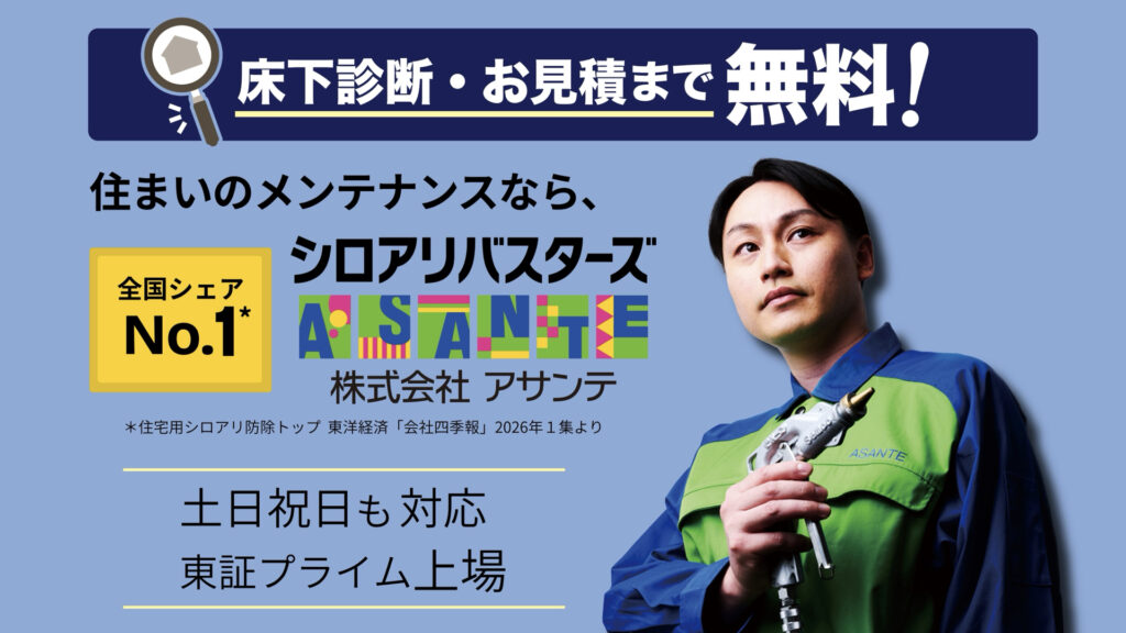 シロアリ防除ならノウハウ・実績豊富なシロアリバスターズのアサンテにお任せ!