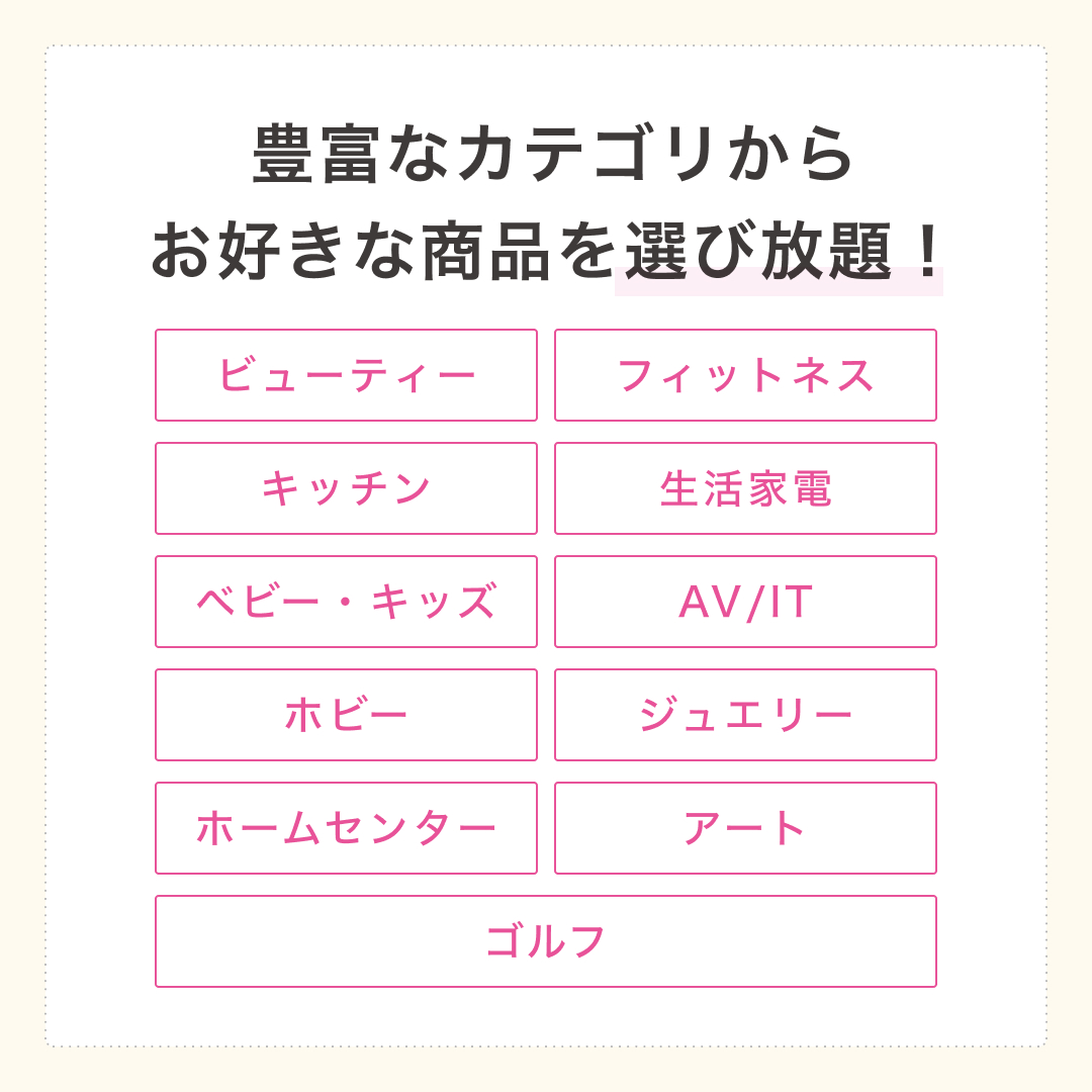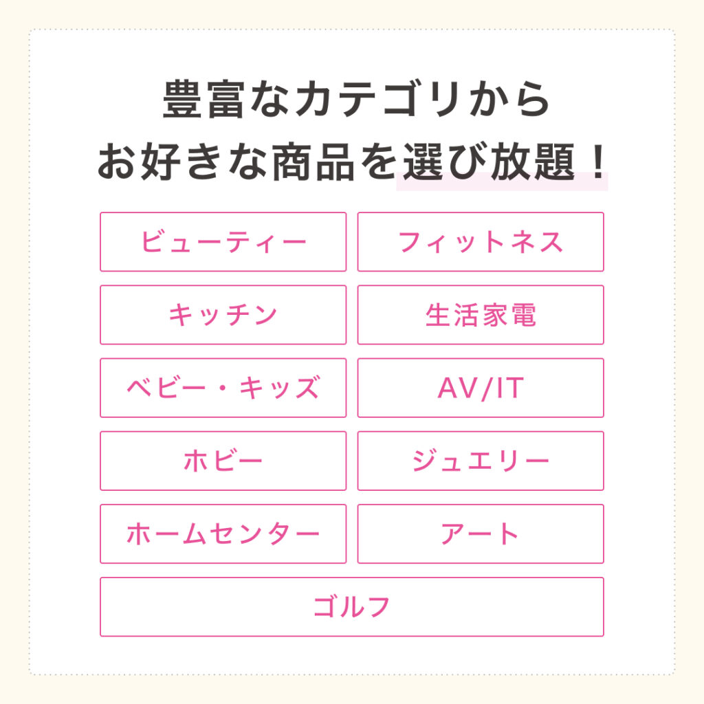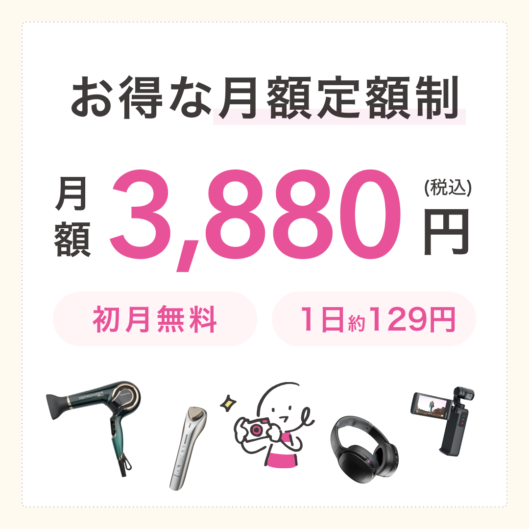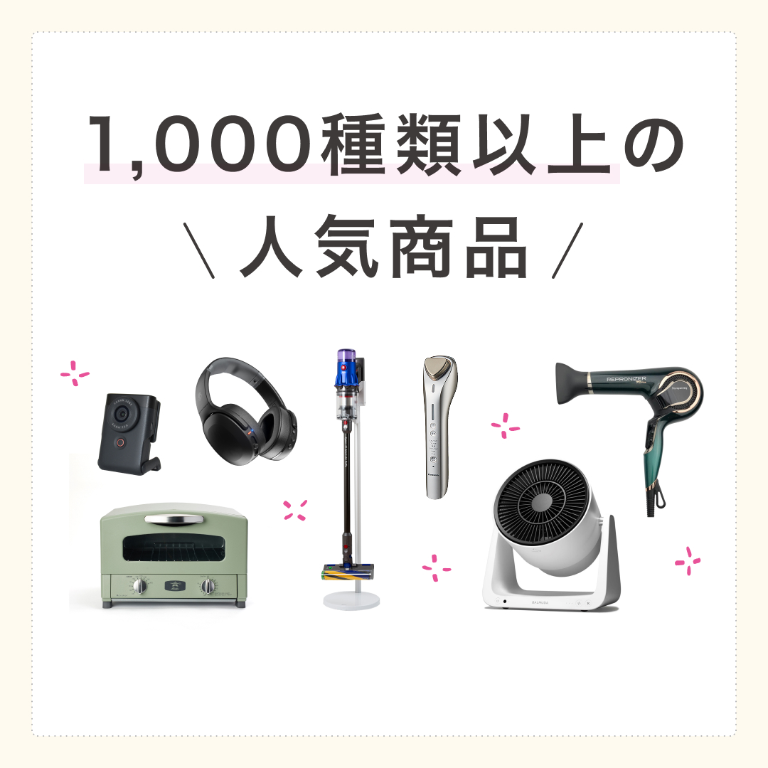 人気家電など1,000種類以上の話題の商品から“使いたいモノ”を自由に交換しながら買わずに使えるサービスです。返却期限なし&往復送料無料