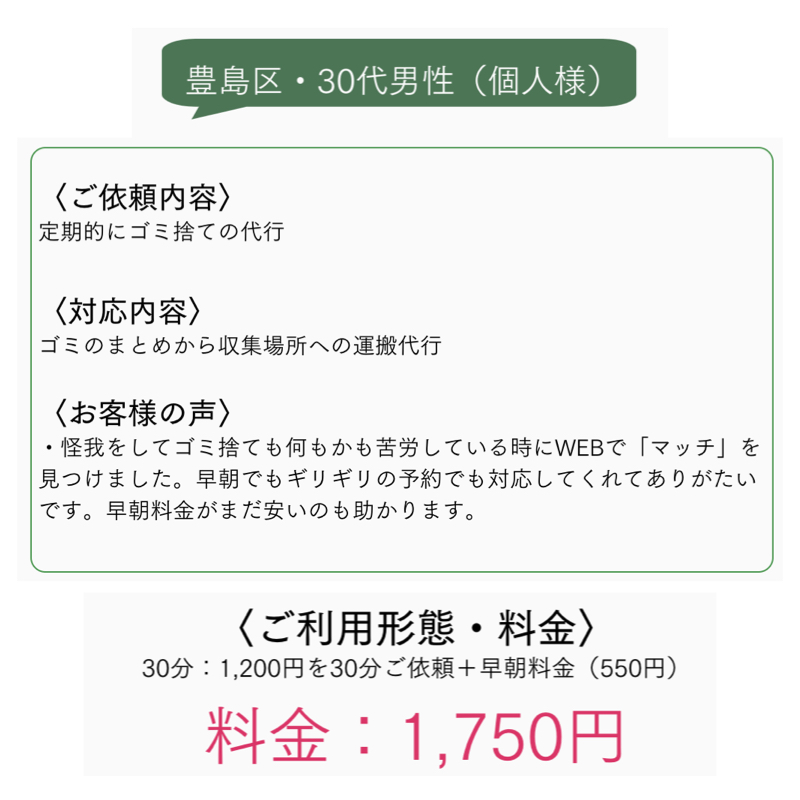 マッチの家事代行サービス 通常1,250円/30分、2,500円/1時間を